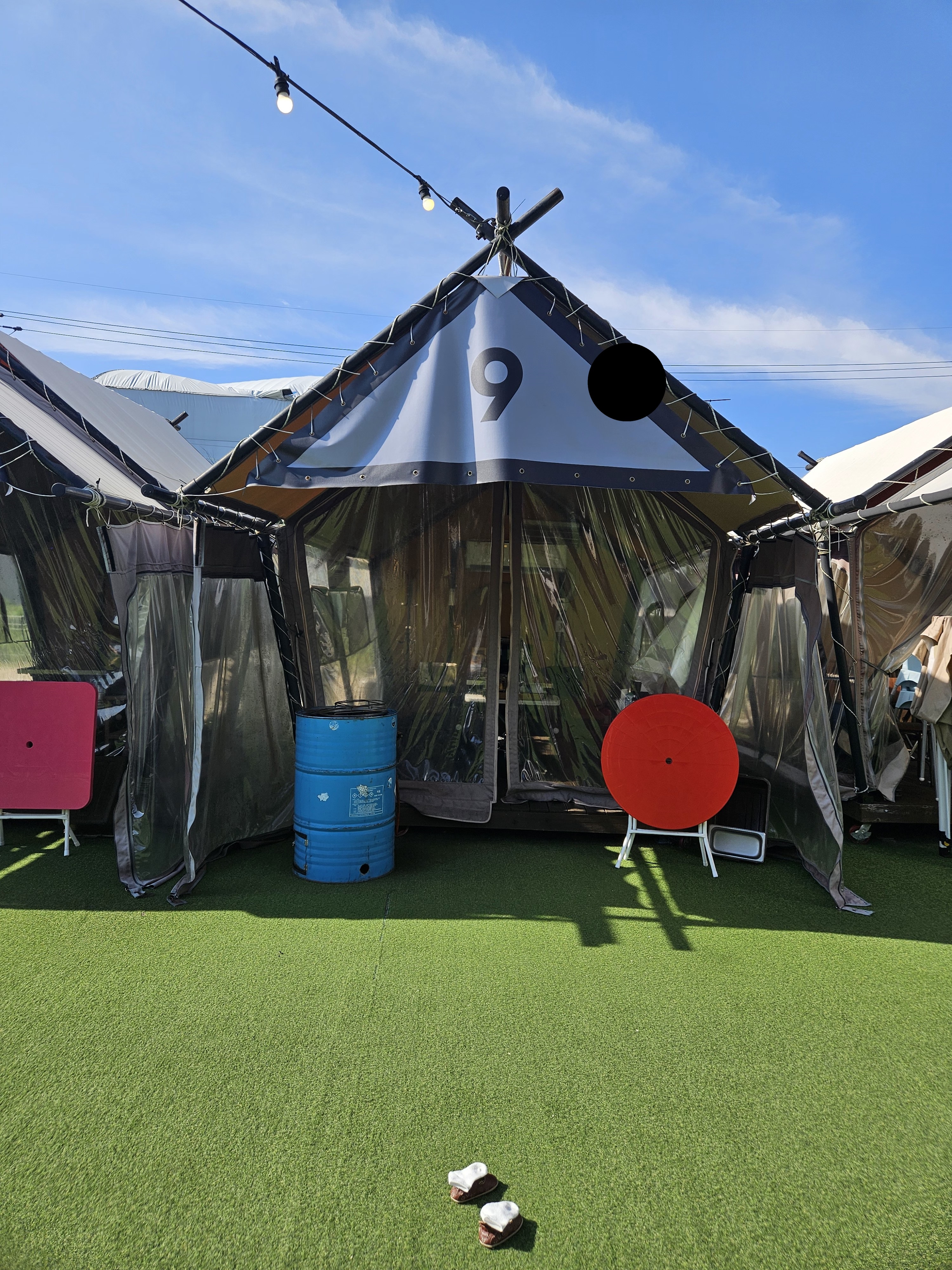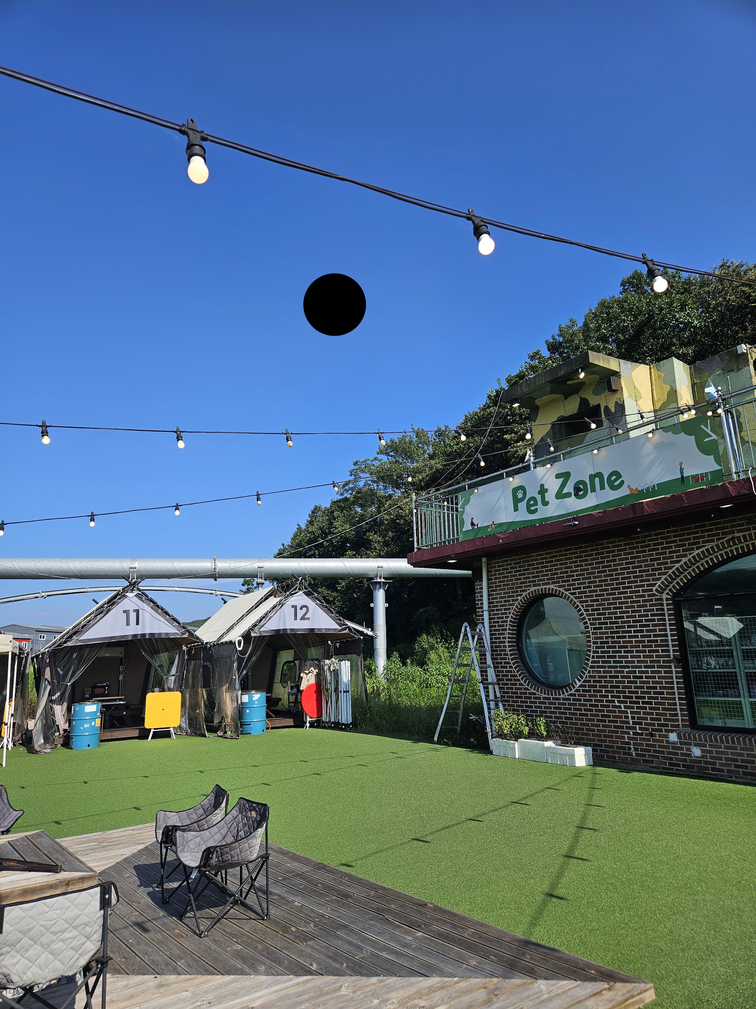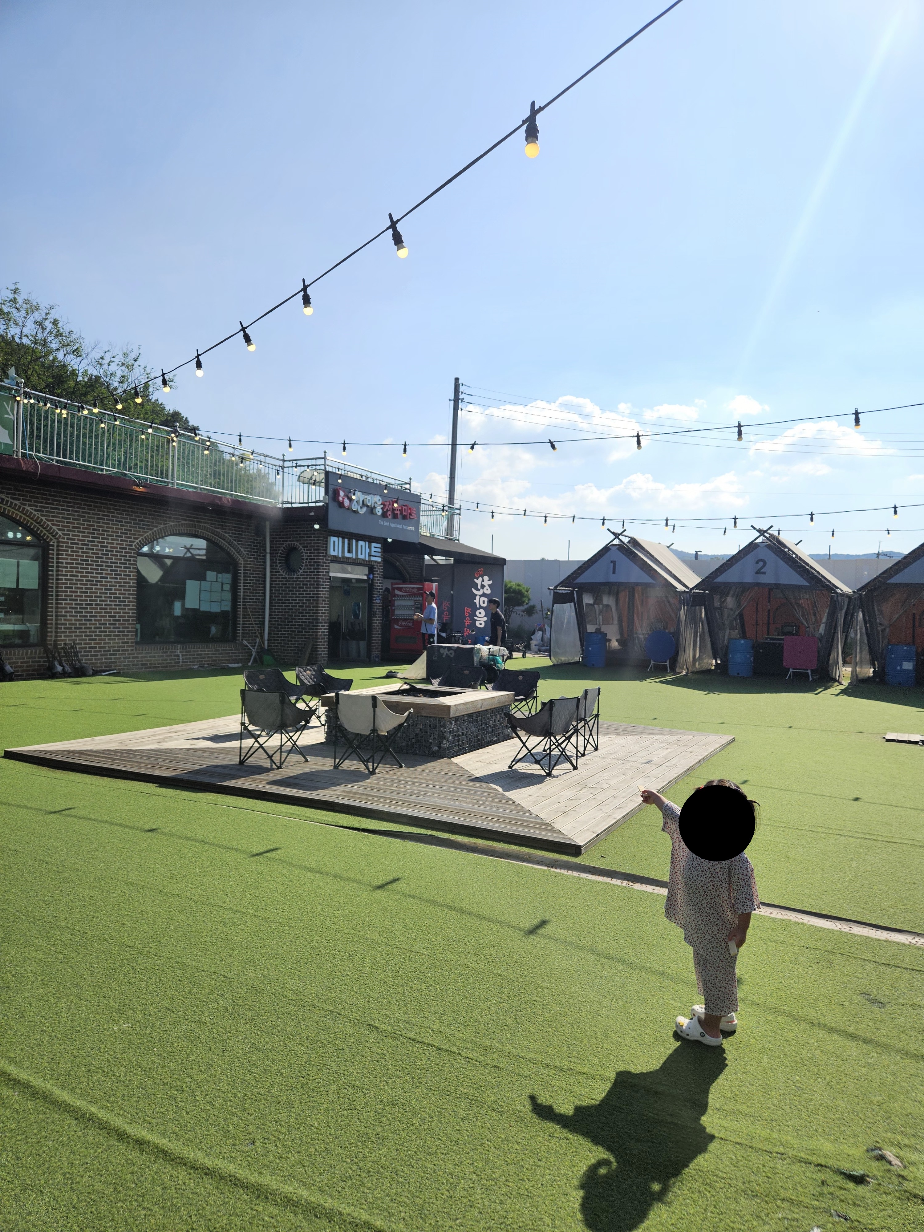 식당에 도착하자마자 눈에 들어온 건 넓은 마당과 캠핑 텐트가 있는 개별 공간이었습니다.