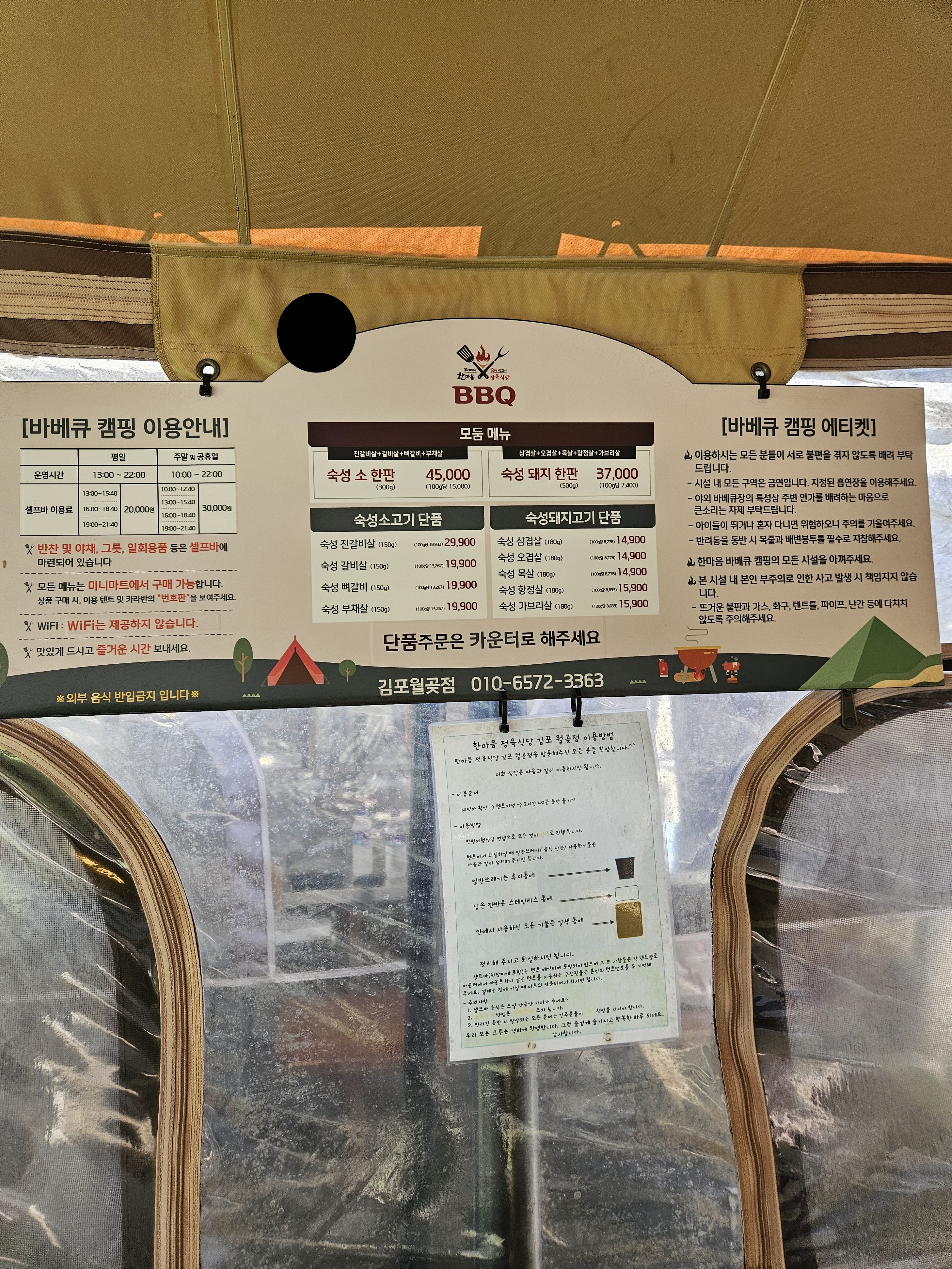 이곳은 고기를 직접 선택해서 구워 먹는 방식인데, 셀프 서비스라 캠핑 온 기분을 제대로 느낄 수 있었습니다.
