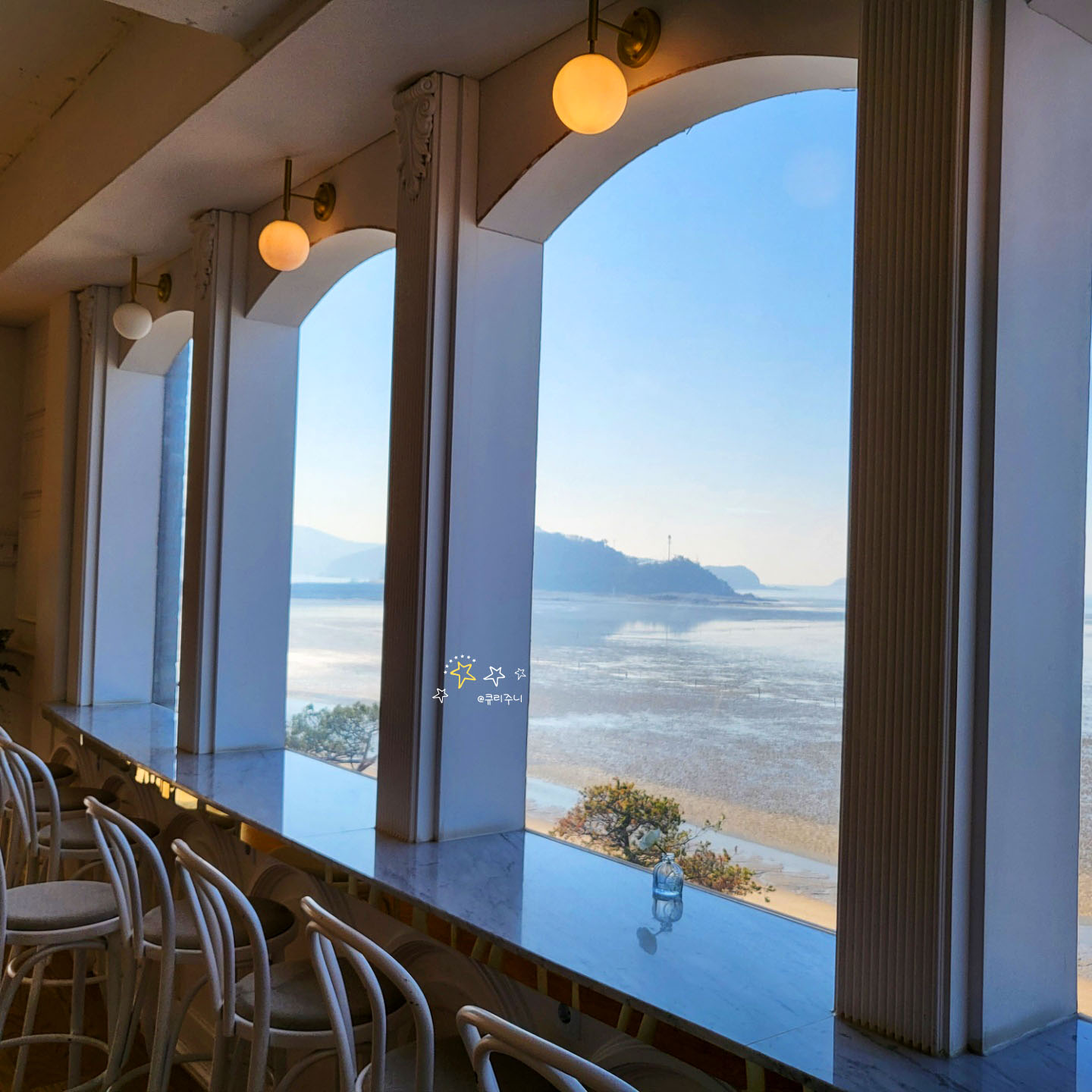 위의 사진은 3층 프랑스 파리를 모방한 곳으로 화이트 대리석과 따뜻한 조명이 어우러진 공간입니다. 특히 바다를 정면으로 주시할 수 있는 창가석은 그 중 인기가 많은 공간입니다. 인천이쁜카페로 소개될만한 C27 다운타운.