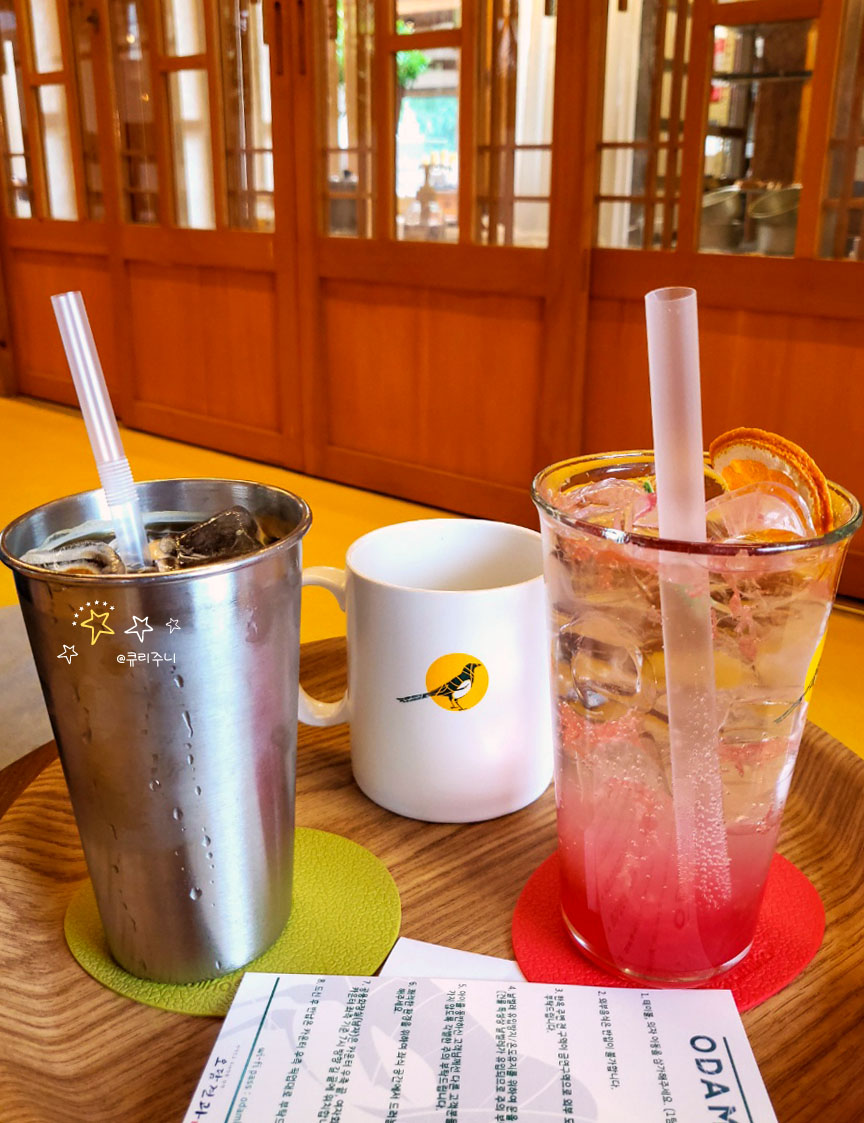 인천 오담카페의 상징인 까치는 행운과 복을 가져다주는 의미로 만들어졌다고 합니다. 커피 홀더나 컵에 새겨있는 까치가 정감가고 기억에 남습니다.