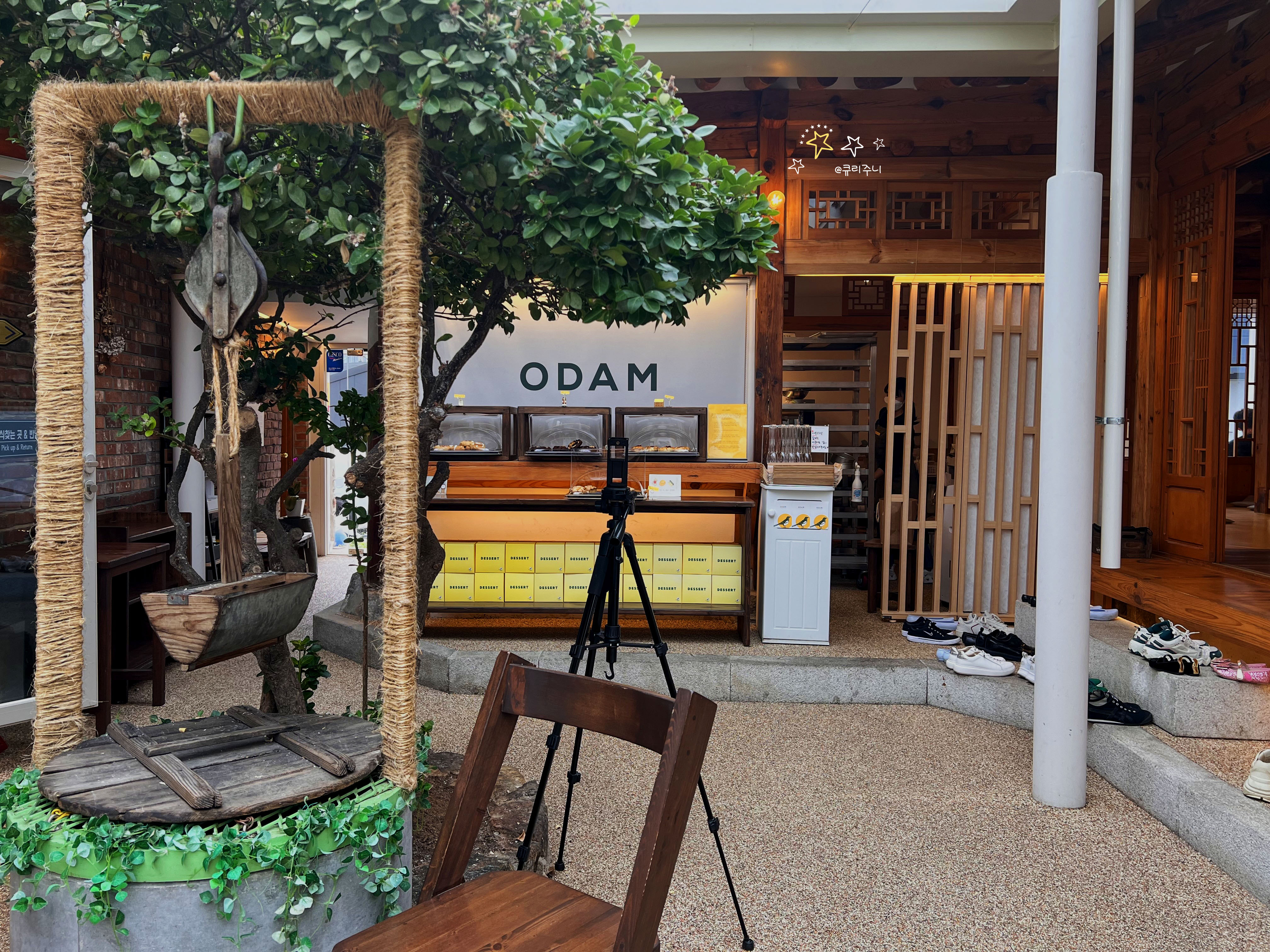 인천이쁜이색카페로 추천하는 오담 카페는 사진 찍기에도 예쁜 공간입니다. 카페 내부에 삼각대도 비치되어 있어 셀카를 찍기에도 좋습니다.