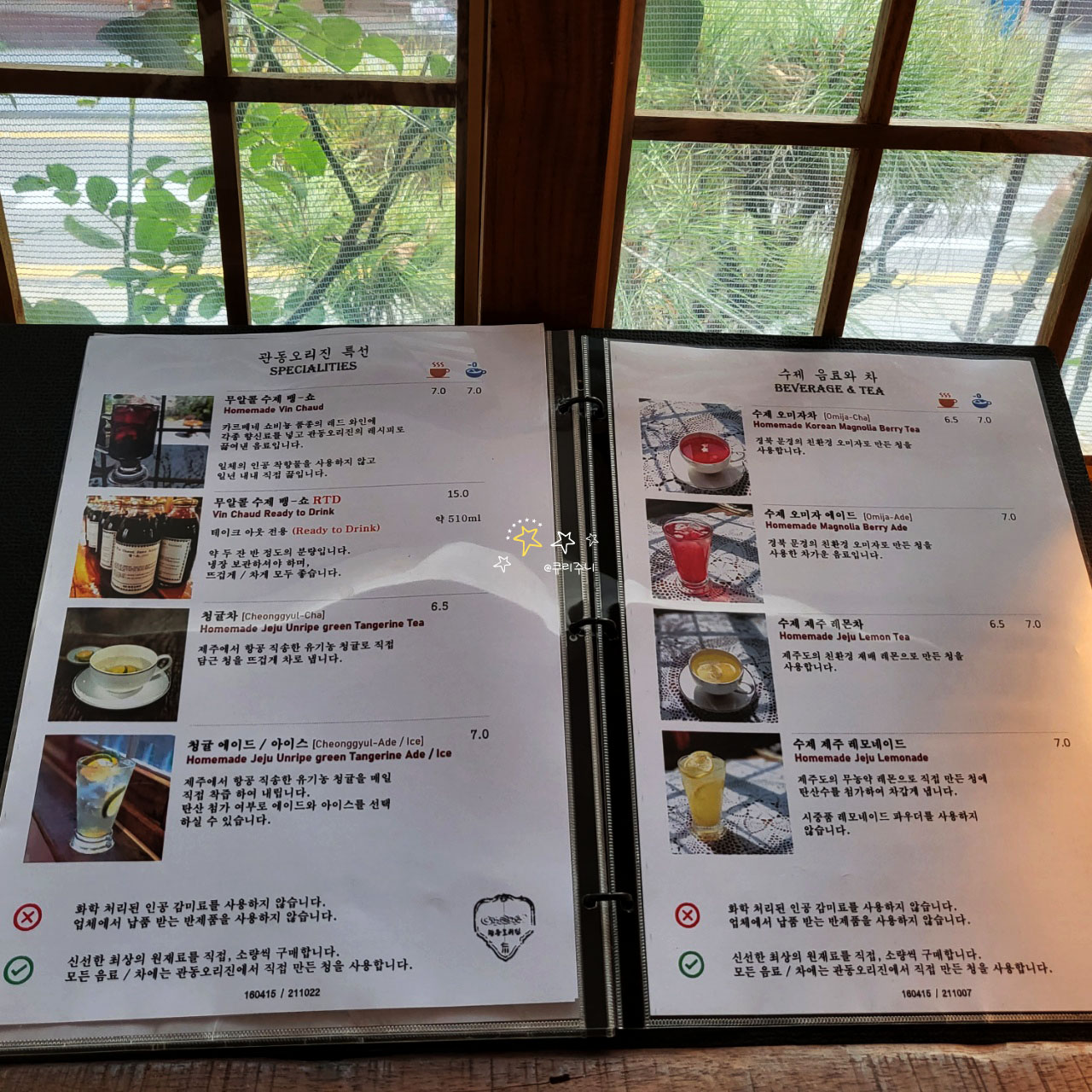 청귤 에이드와 아이스의 구분은 탄산이 포함되어 있는지에 따라 나뉘며 제주에서 직송한 유기농 청귤을 매일 착즉하여 만들어 진다고 하여 추천되는 음료입니다.