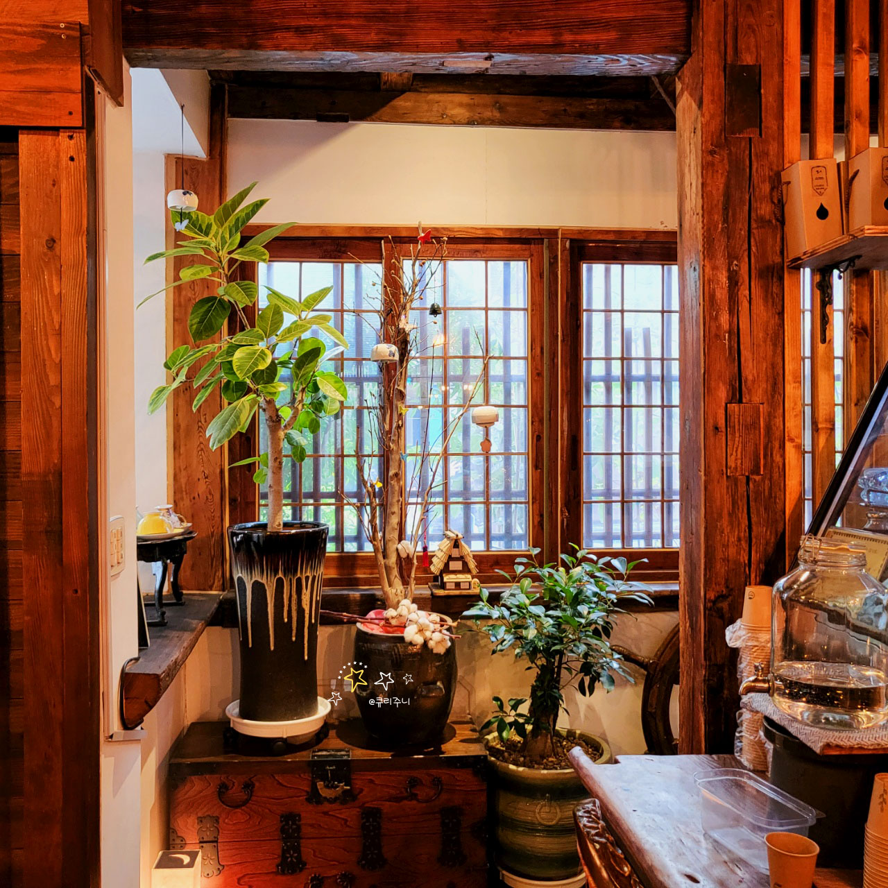 실제 한옥을 리모델링하였기 때문에 억지스럽지 않고 자연스러운 멋이 깃들어 있는 카페입니다.