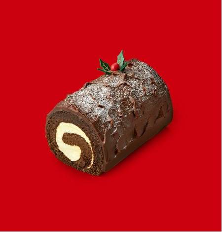 통나무의 모양을 형성화한 롤케이크로 다크 코코아를 함유한 케이크 시트에 커피 시럽과 진한 마스카포네 크림을 차례로 넣어 롤로 말아 만든 케이크 입니다. 케이크 표면에는 달콤하고 진한 다크 가나슈로 코팅하여 통나무의 질감을 표현했습니다. 가나슈는 카카오 함량 54% 벨기에산 초콜릿으로 카카오 특유의 산미를 느끼실 수 있습니다.