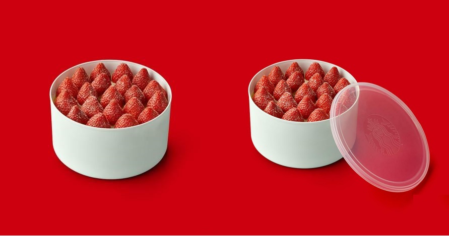 두 겹의 케이크 시트 사이 사이에 찐한 마스카포네 크림을 쌓아 넣고 그 위로 제철 딸기를 듬뿍 올린 스타벅스 홀케이크입니다. 올라간 딸기 표면에는 슈가 파우더가 뿌려져 있어 더욱 달콤한 맛을 느낄 수 있습니다. 뚜껑이 달린 재활용이 가능한 케이스에 담겨진 케이크로 떠먹는 케이크인 점을 참고 바랍니다.