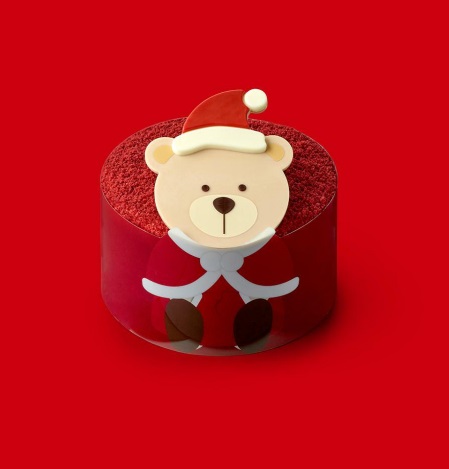 체크 모양으로 번갈아 쌓아 올린 레드 벨벳 시트와 화이트 케이크 시트 사이에 꾸덕하고 진한 크림 치즈를 겹겹이 올린 홀케이크 입니다. 겉면에 올려진 산타를 연상시키는 빨간 가루와 대형 산타 베어리스타 초콜릿으로 장식하여 크리스마스 분위기를 표현하는 레드벨벳 케이크입니다.